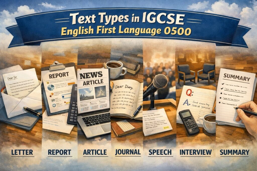 As you know, the Cambridge IGCSE First Language English 0500 wants you to develop an awareness and familiarity with different types of texts throughout the entire duration of the course. As it turns out, there are a few official ones that you have to be aware of. With that in mind, according to the official Cambridge syllabus, students must be able to write in the following text types: